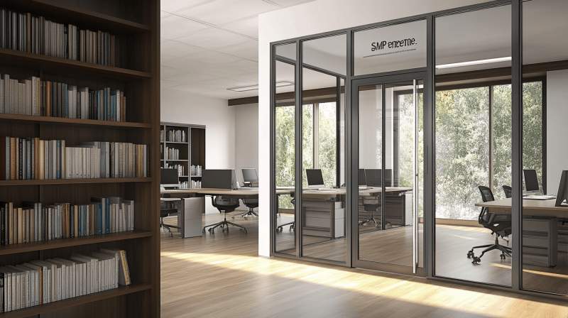 Стеклянные перегородки в офисе. Изображение сгенерировано с помощью нейросети Midjourney